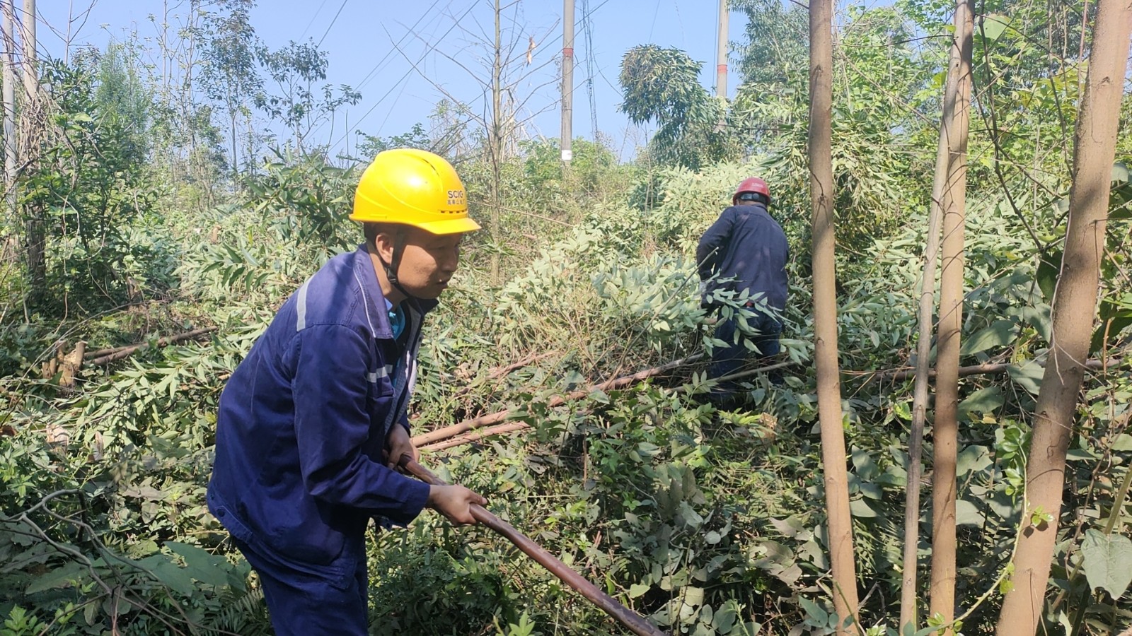 高奉山電廠位于四川盆地西南邊緣的洪雅縣,這里年降雨量1385毫米,電廠的送出線路有80%跨越或臨近林區(qū)。97基桿塔如星辰般散落在3個鄉(xiāng)鎮(zhèn)、12個村落構(gòu)成的30多公里線路上。位置最為深入的鐵塔,電廠維護(hù)人員從早上8時出發(fā)上山,要一直到下午才能到達(dá),他們徒步前行,一步步踩出“保電長征”的印記。
