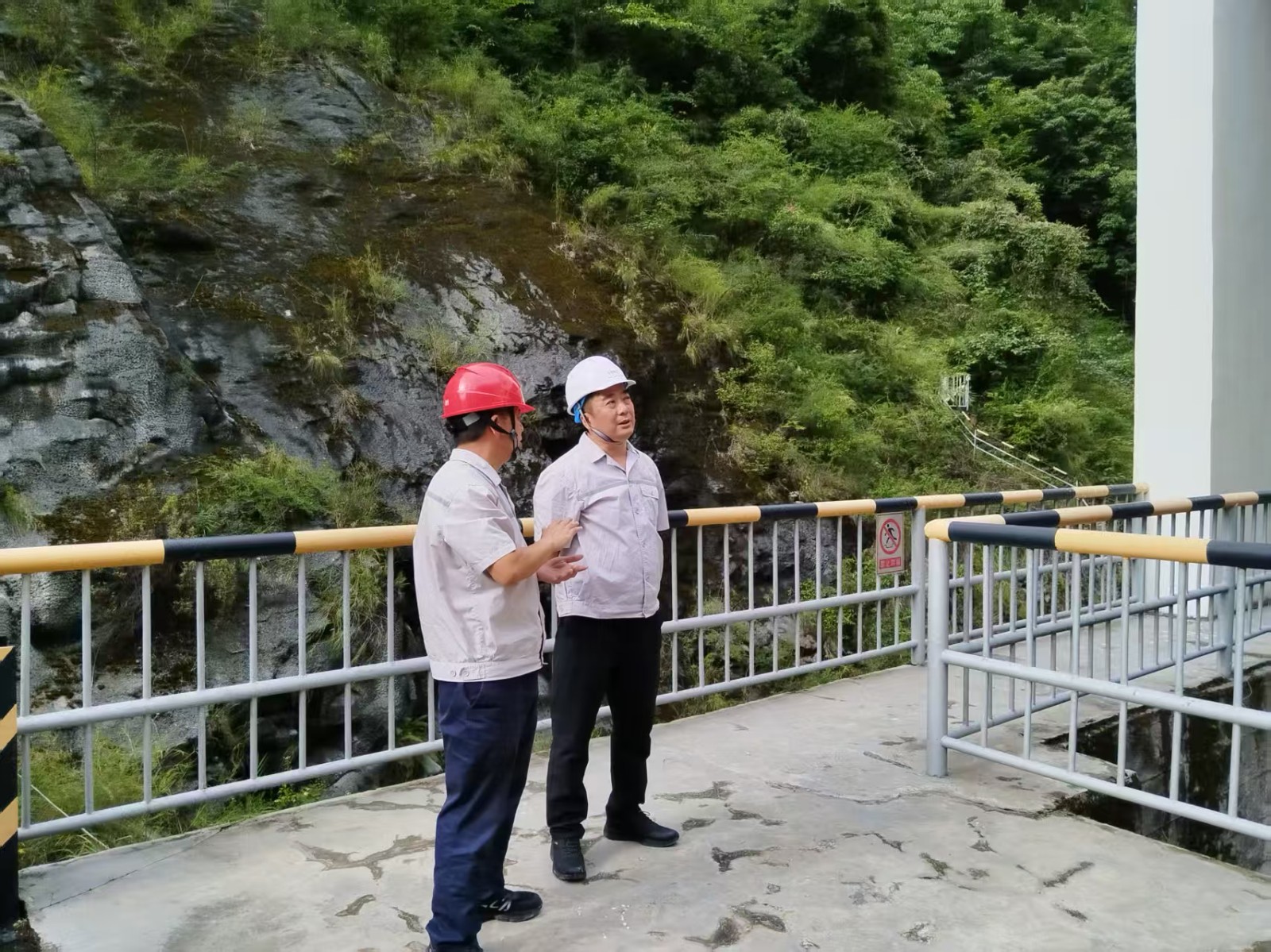 楊濤一行深入大壩、主副廠房、中控室、升壓站等關鍵區(qū)域,圍繞水工建筑物安全度汛、機組運行工況、設備檢修維護、消防設施配備及應急物資儲備等方面,逐項排查風險隱患。檢查中,楊濤強調(diào),要堅持“人民至上、生命至上”理念,以極限思維將防汛減災措施細化落實到最小單元,堅決守牢安全底線;針對大壩落石風險,要求電廠研究采用遠程監(jiān)視和控制方式,保障大壩值班人員安全,同時進一步改善員工住宿條件。