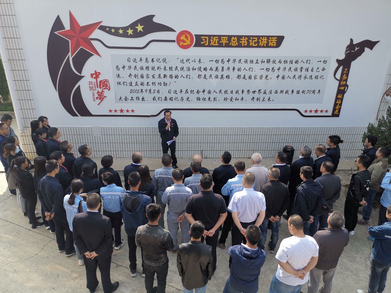 蒼松翠柏掩映下革命烈士紀(jì)念碑巍然聳立,伴隨著鏗鏘激昂的《義勇軍進(jìn)行曲》,全體人員齊聲高唱中華人民共和國國歌。國歌唱畢,全場肅立,向革命英烈默哀致敬。之后,公司黨總支副書記、總經(jīng)理蔡承德帶領(lǐng)全體黨員重溫了入黨誓詞。公司黨總支書記、董事長徐孝剛代表全體人員向革命英烈敬獻(xiàn)花籃,并駐足凝視、仔細(xì)整理花籃緞帶。敬獻(xiàn)花籃儀式結(jié)束后,全體人員對烈士紀(jì)念碑和烈士墓進(jìn)行了祭掃,徐孝剛以《為了共同的事業(yè)》為題,背靠習(xí)近平總書記紀(jì)念抗日戰(zhàn)爭暨世界反法西斯戰(zhàn)爭勝利70周年大會講話照壁,講授了一堂生動的黨史學(xué)習(xí)微黨課。