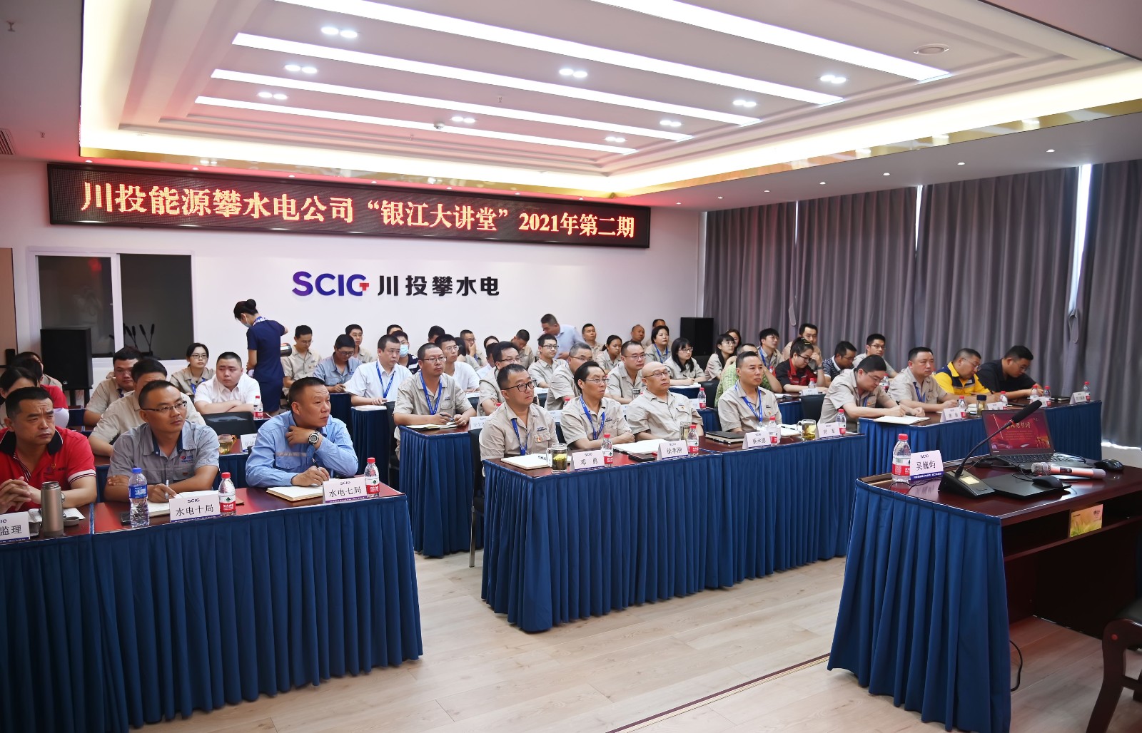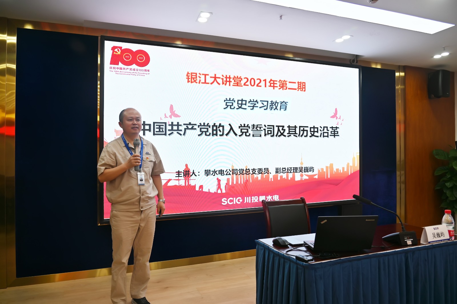 自川投能源攀水電公司“銀江大講堂”開講以來,一直受到了公司員工和各參建單位的廣大歡迎。為持續(xù)開展好“銀江大講堂”活動,近日結(jié)合黨史學(xué)習(xí)教育主題,開辦了黨史學(xué)習(xí)教育專場。黨員干部學(xué)習(xí)積極性高漲,公司全體員工及各參建單位黨員代表共40余人參加。