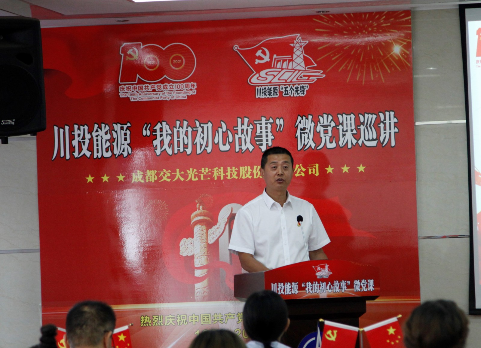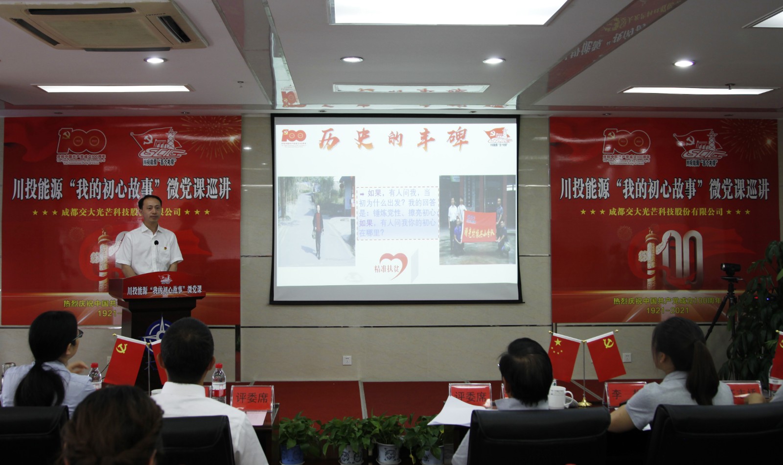 在全黨深入開(kāi)展黨史學(xué)習(xí)教育之際,5月25日,川投能源“我的初心故事”微黨課巡講團(tuán)走進(jìn)交大光芒。微黨課巡講團(tuán)由能源本部、天彭電力、槽漁灘公司、交大光芒、川投電力和攀水電公司選派的6名優(yōu)秀黨員代表組成。川投能源黨委副書記、工會(huì)主席楊超龍,交大光芒黨總支書記、總經(jīng)理劉成輝和交大光芒黨員、員工代表30余人參加本次活動(dòng)。