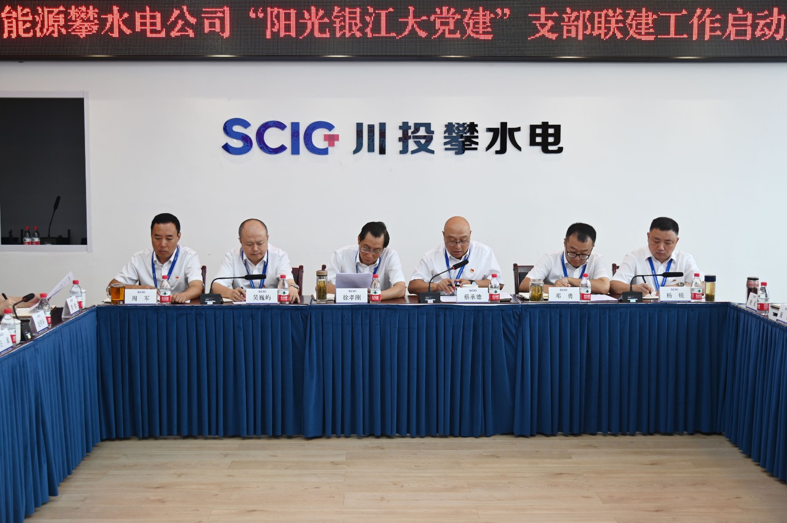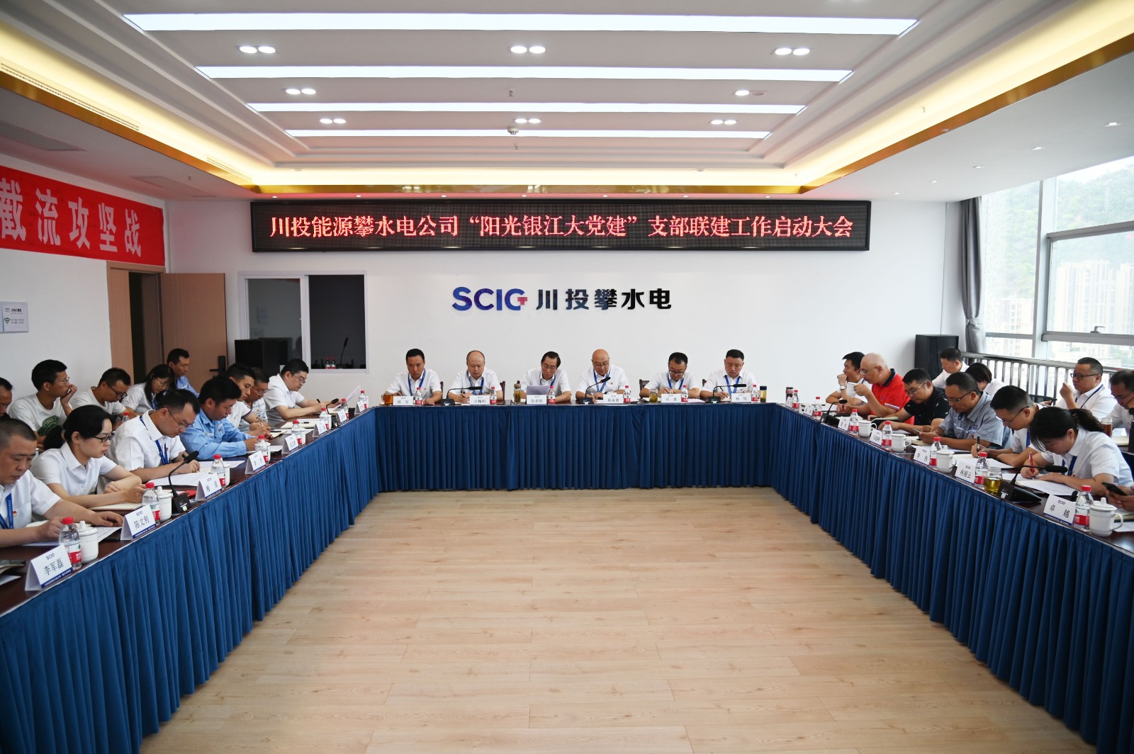 近日,川投能源攀水電公司黨總支召開了“陽光銀江大黨建”支部聯(lián)建工作啟動(dòng)大會,正式成立兩個(gè)機(jī)關(guān)支部和六個(gè)聯(lián)建支部。川投能源副總經(jīng)理、攀水電公司黨總支書記、董事長徐孝剛,攀水電公司領(lǐng)導(dǎo)干部、參建單位負(fù)責(zé)人、機(jī)關(guān)支部及聯(lián)建支部支委共計(jì)40余人參會,會議由公司黨總支副書記、總經(jīng)理蔡承德主持。