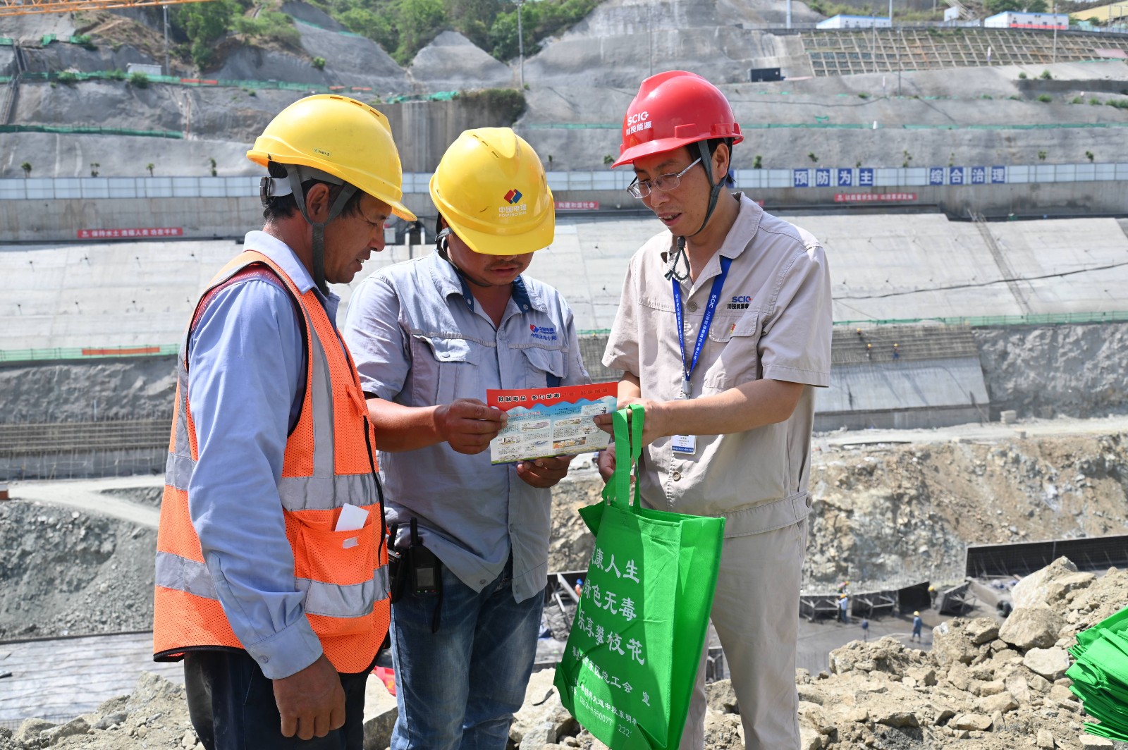 活動結束后,川能能源副總經(jīng)理、攀水電公司黨總支書記、董事長徐孝剛帶領大家到施工現(xiàn)場,為一線建設者發(fā)放禁毒宣傳資料,現(xiàn)場講解禁毒知識,希望每一位職工與家人都要珍愛生命、遠離毒品,并要求在隨后公司開展的安全知識競賽中增加禁毒知識,進一步增強公司及參建單位全體職工的識毒、防毒、拒毒的意識和能力,為構建和諧無毒工地奠定基礎。