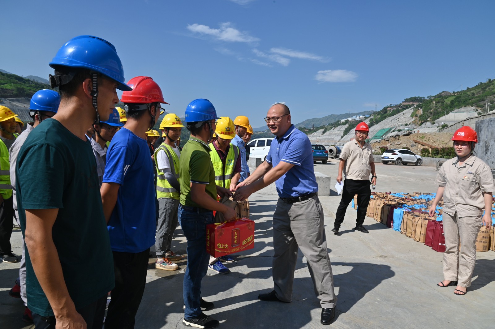 7月以來,攀枝花氣溫持續(xù)升高,為了保證一線職工在高溫環(huán)境下安全、清涼工作,近日攀枝花市東區(qū)總工會(huì)黨組書記、常務(wù)副主席劉貴平一行來到川投能源銀江水電站施工現(xiàn)場愛心驛站,為一線建設(shè)者們送來了300余份清涼解暑飲品和防暑降溫用品,慰問奮戰(zhàn)在高溫一線的作業(yè)人員和管理人員。