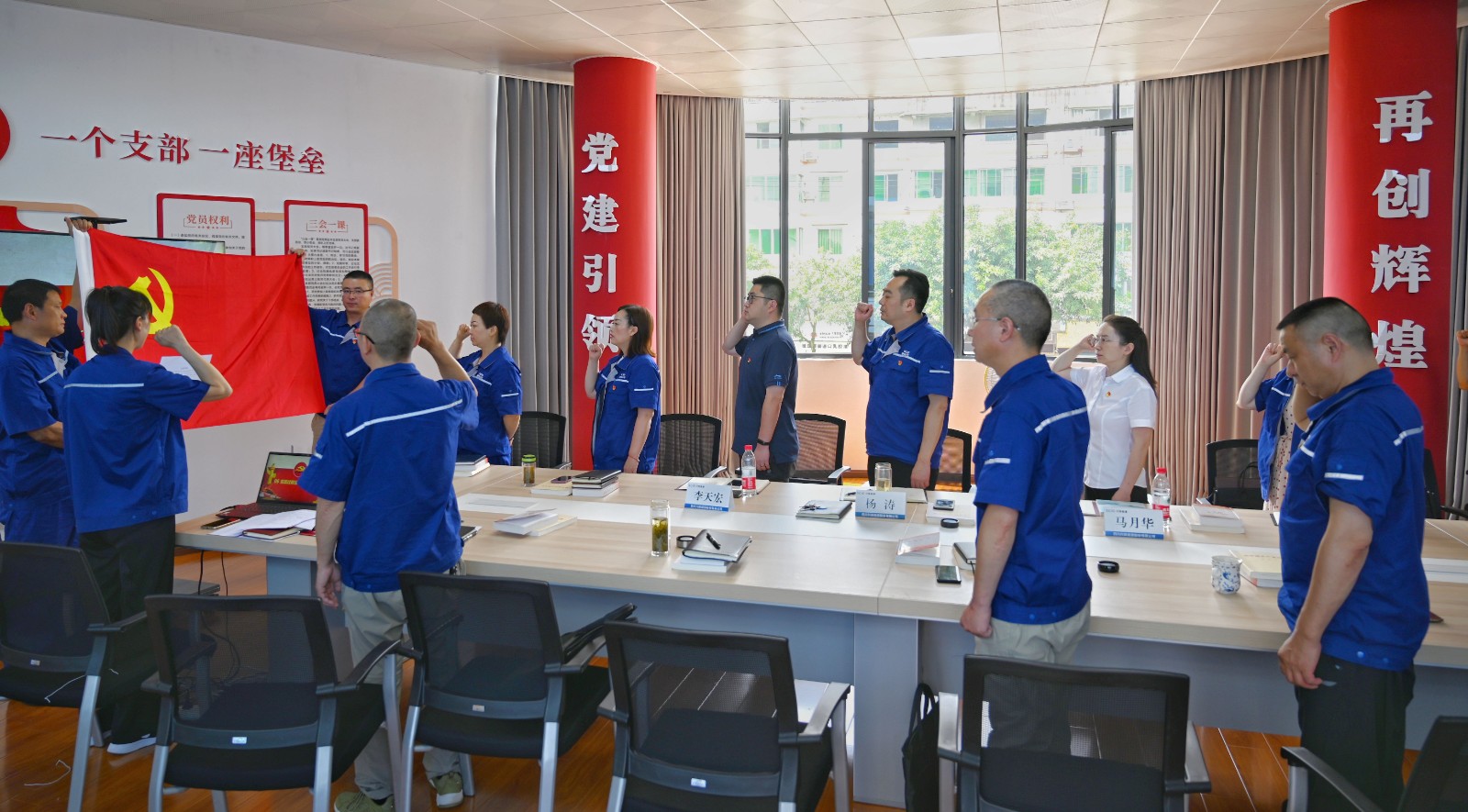 最后,全體黨員還集體過了政治生日,面對(duì)鮮紅的黨旗,重溫了入黨誓詞。