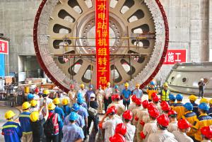 【攀水電公司】銀江水電站首臺(tái)機(jī)組轉(zhuǎn)子順利吊裝