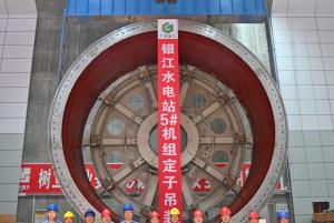 【攀水電】川投能源銀江水電站5號(hào)機(jī)組轉(zhuǎn)子與定子吊裝成功