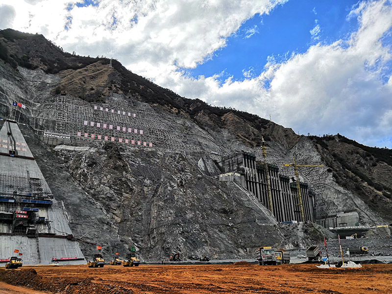 目前,正值兩河口電站工程建設(shè)的重要時期,到處都是熱火朝天的勞動畫面。上百家參建單位、2萬多名建設(shè)者揮灑“艱苦不怕吃苦、缺氧不缺精神”的豪邁情懷,克服“五高六大兩長”難點和高寒海拔惡劣自然環(huán)境、復(fù)雜的建設(shè)環(huán)境等不利條件,工程建設(shè)實現(xiàn)一個又一個里程碑目標(biāo)。在高土石壩,上百臺推土機在工地上忙碌穿梭,建設(shè)者們忙碌的身影和機械的隆隆聲交織回蕩在高山峽谷中,這座世界第3高壩正日益成型;在兩岸巖壁上,為了在200層樓高的幾乎垂直的巖壁中固定15000根錨索,黨員帶頭沖鋒在前,硬是將一根根的錨索肩扛手提抬了上去;在地下廠房,建設(shè)者們克服潮濕昏暗、溫差變化大的不利條件,晝夜不停精心安裝碩大無比的發(fā)電裝置,工地上隨處可見一面面黨員突擊隊、青年突擊隊火紅的旗幟迎風(fēng)飄揚,成為一道道亮麗的風(fēng)景線。