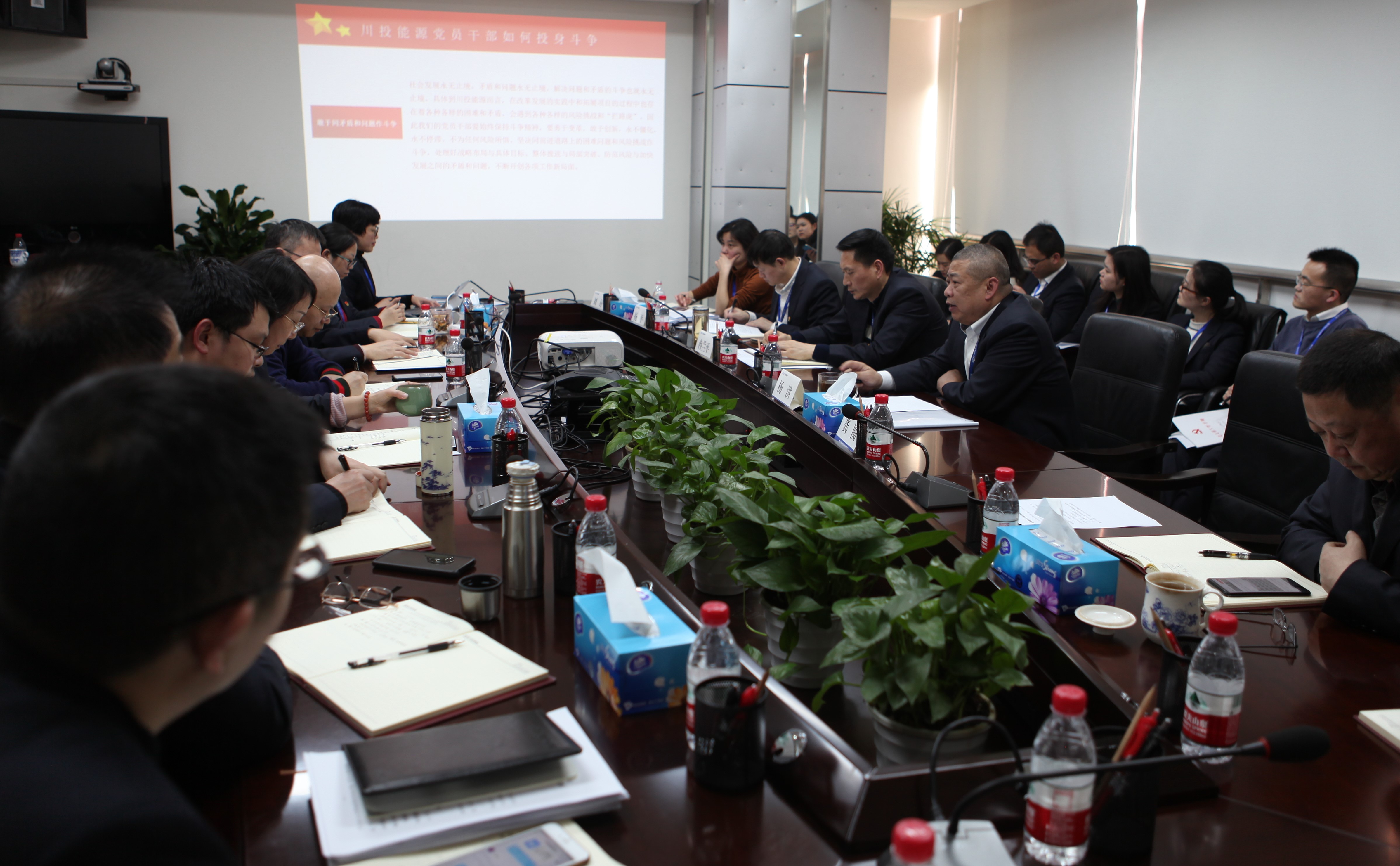 公司本部及川投電力公司全體黨員、中層及以上管理人員,天彭電力和交大光芒黨建、紀檢負責人參加黨課學習。