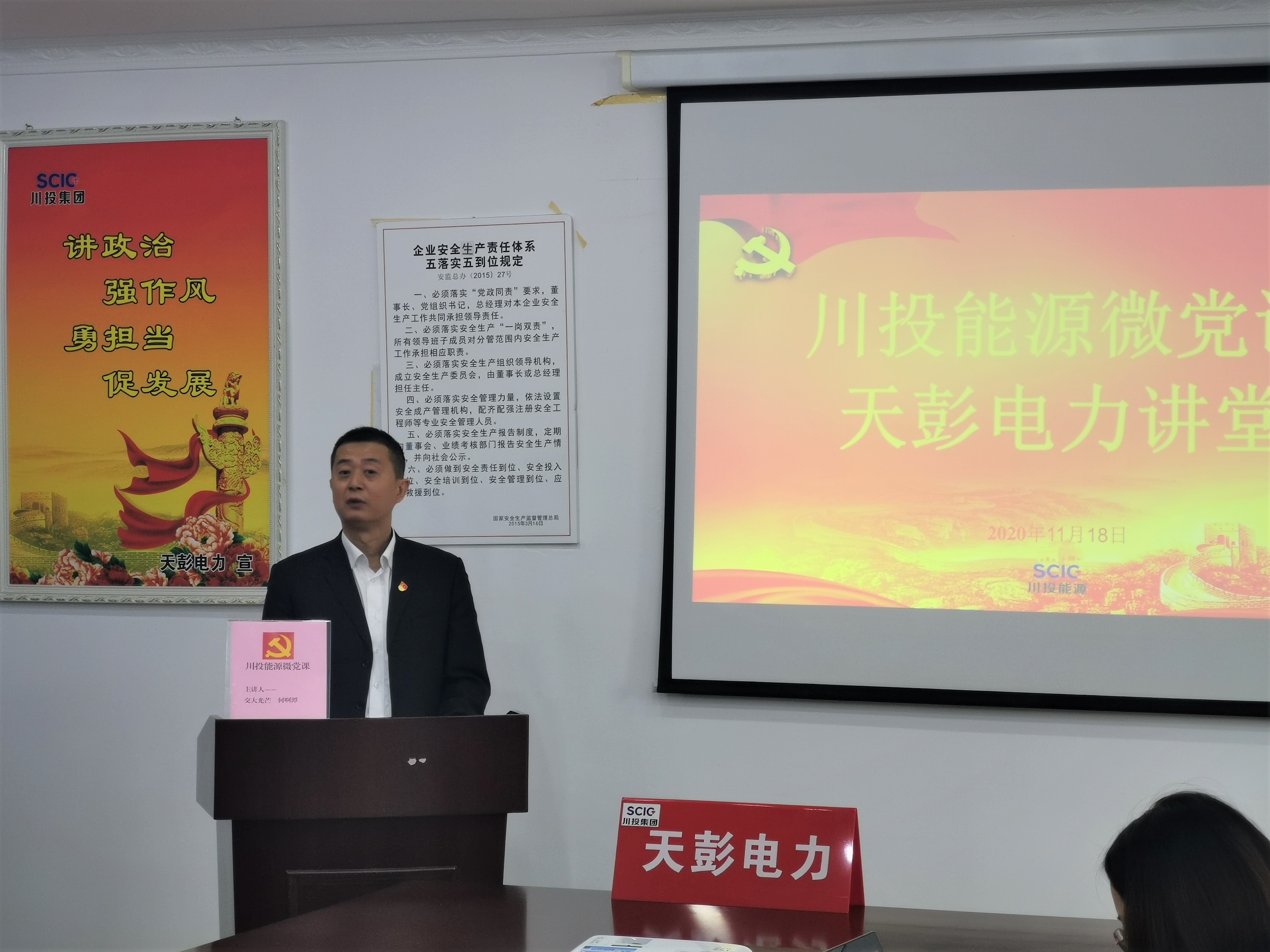 11月18日,川投能源微黨課首講在天彭電力展開(kāi),主講者是剛獲得四川省“四川省抗擊新冠肺炎疫情先進(jìn)個(gè)人”光榮稱(chēng)號(hào)、來(lái)自交大光芒事業(yè)二部的技術(shù)工程師何啊潭。